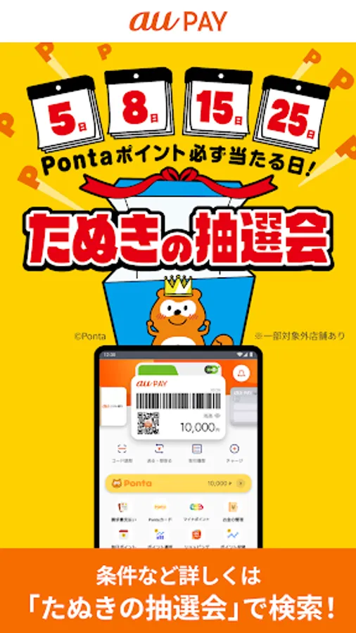 ●Payment is advantageous on days with 5 and 8 every month! Win up to 3,000 Ponta points at the tanuki lottery!