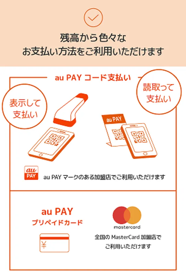 You can smoothly charge (deposit) to your au PAY balance from the app.
