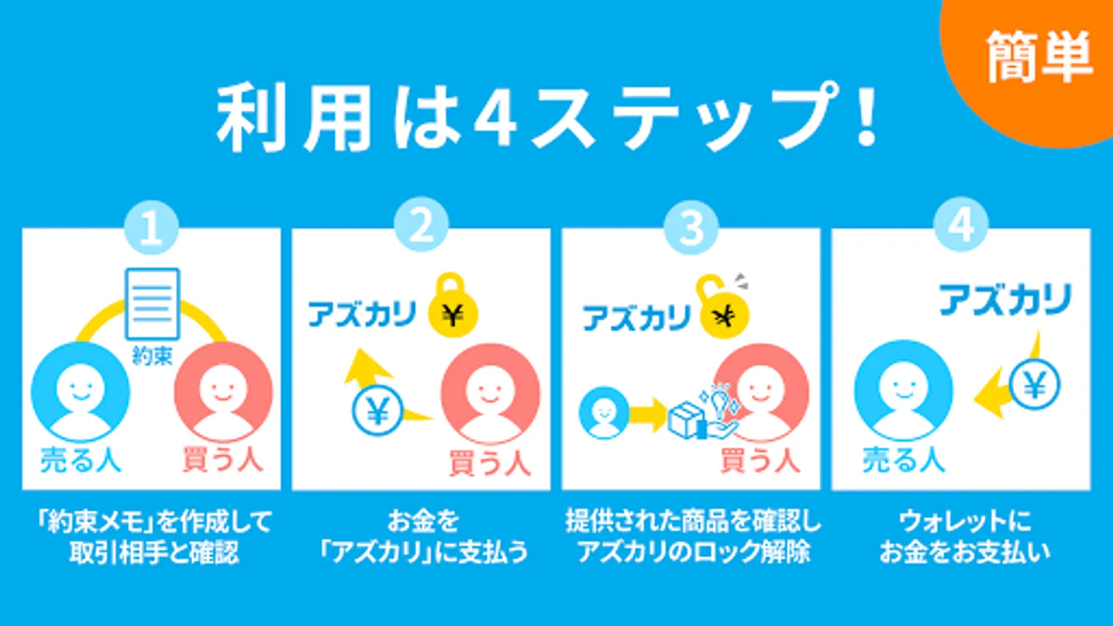 Eliminates the hassle and transportation costs of meeting directly with a business partner and handing over the product and price. You will be able to trade with a wide range of people, such as SNS followers, even if you are far away, without narrowing down the trading partners to the neighborhood.