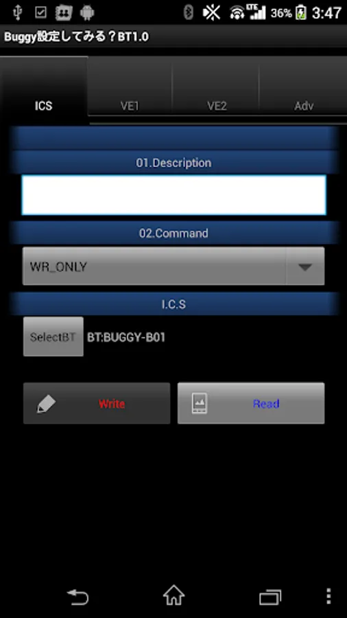 Connect the "Bluetooth ICS adapter" for BUGGY It is an application for setting of Mini-Z Buggy.