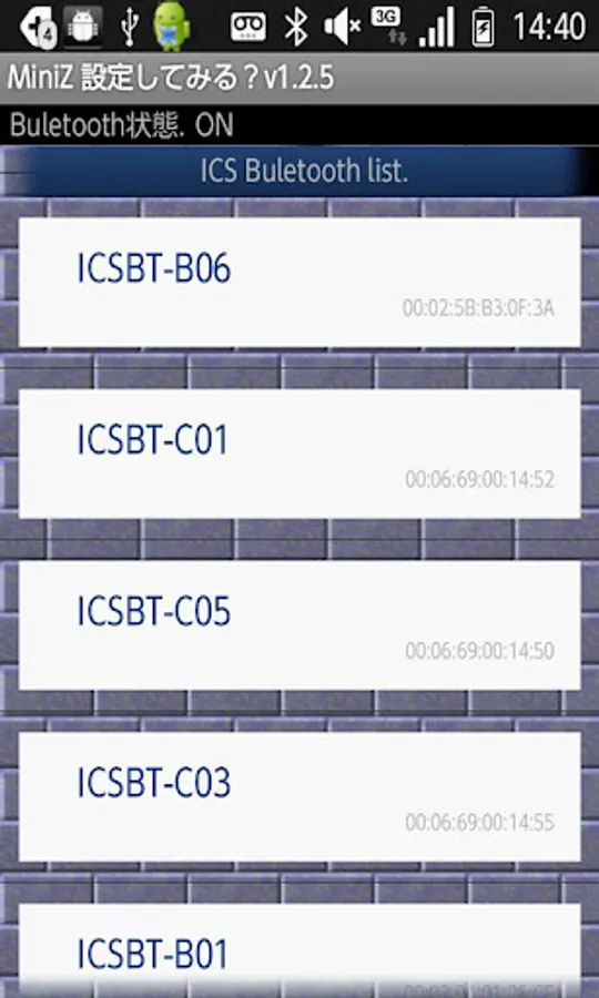 Connect the original "BluetoothICS adapter" It is an application for setting of Mini-Z.