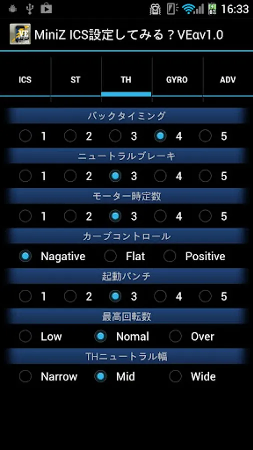 This function is almost equivalent to "MINI-Z MR-03VE ICS Kyosho Manager" PC software.