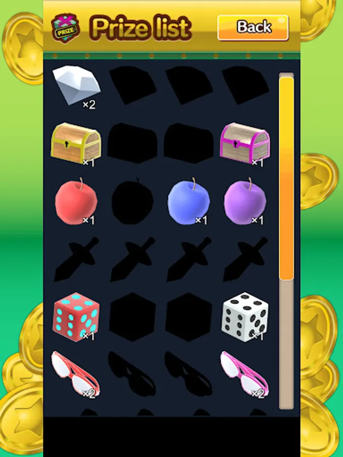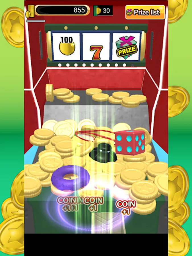 When coins fall in the front basket, the slots will spin and you'll have a chance for bonus items!