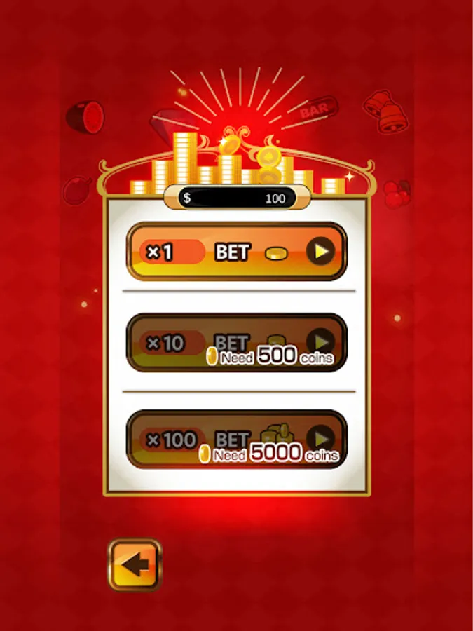 As the number of coins increases, you will be able to play with 10 coins and 100 coins.