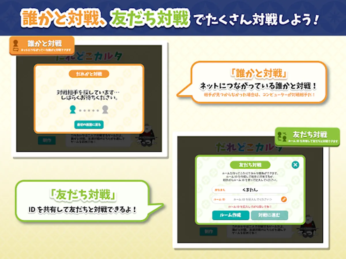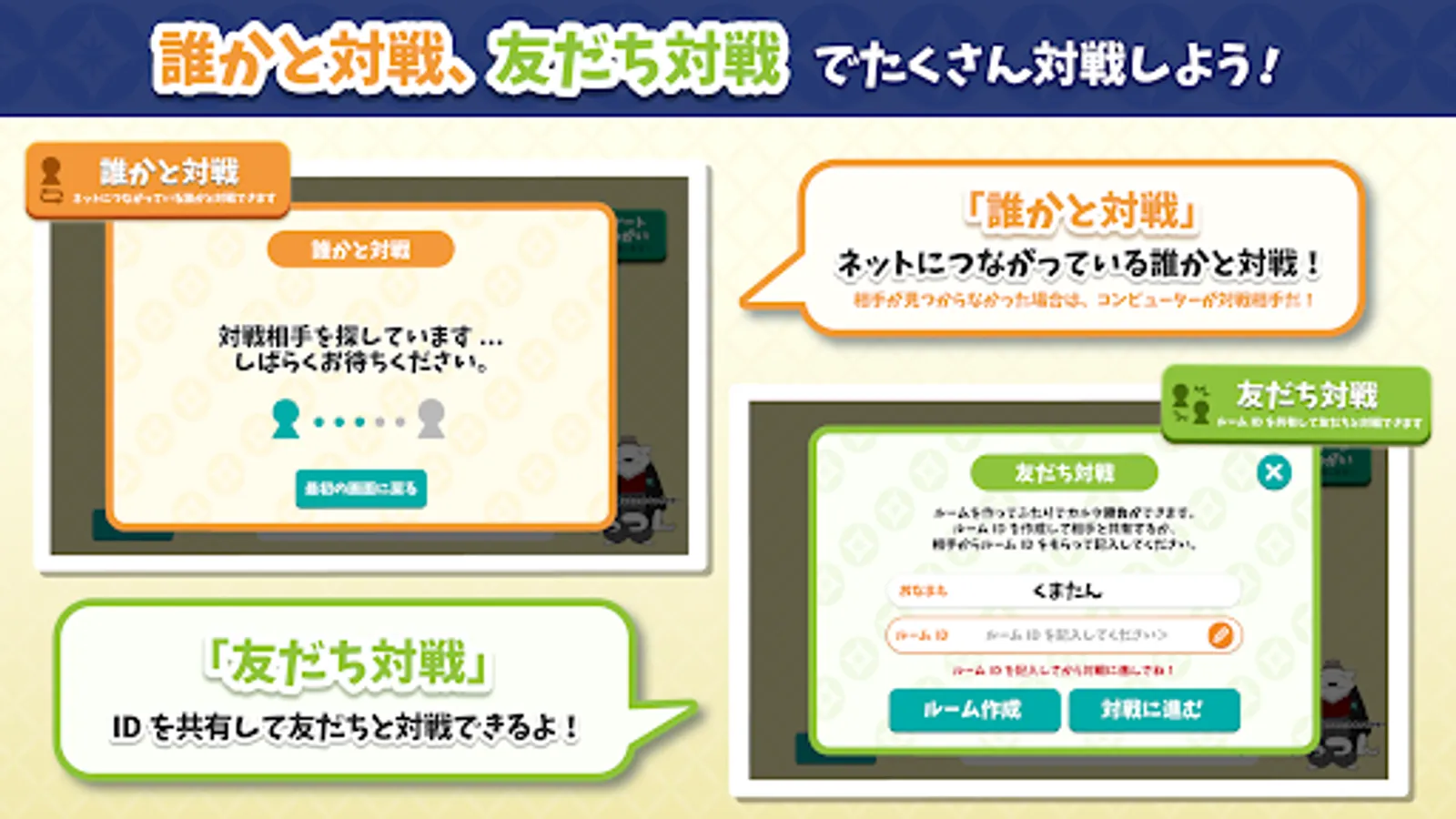 ◆ In "Friends Match", you can share the room ID and play against your friends.