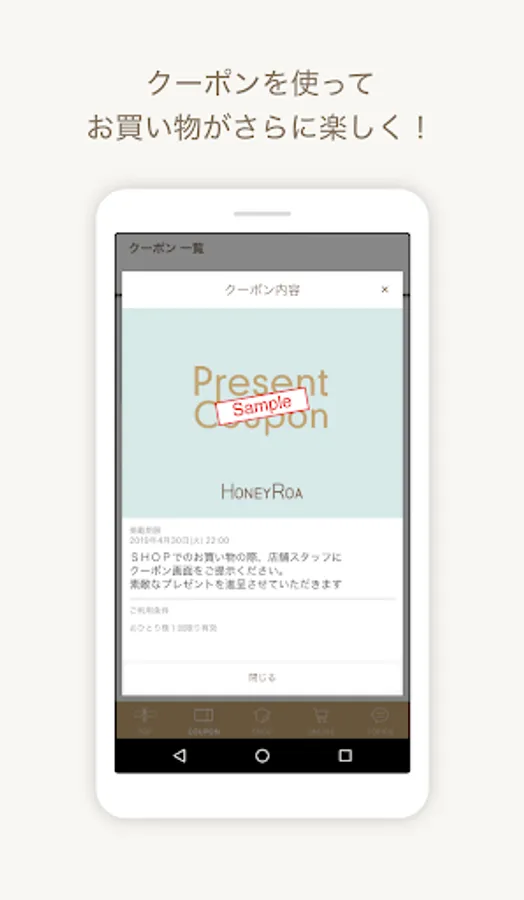 「HONEY ROA」「VECUA Honey」の直営店・公式オンラインショップ共通で、ポイントを貯める&使えるHONEY ROAの公式アプリです。