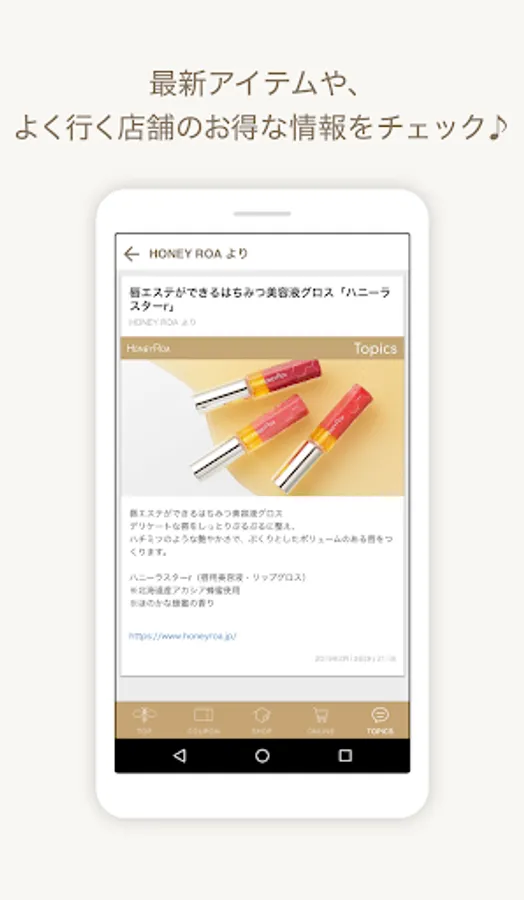 HONEY ROAの新商品、限定商品、限定企画など、いち早くアプリから最新情報をお届けします。