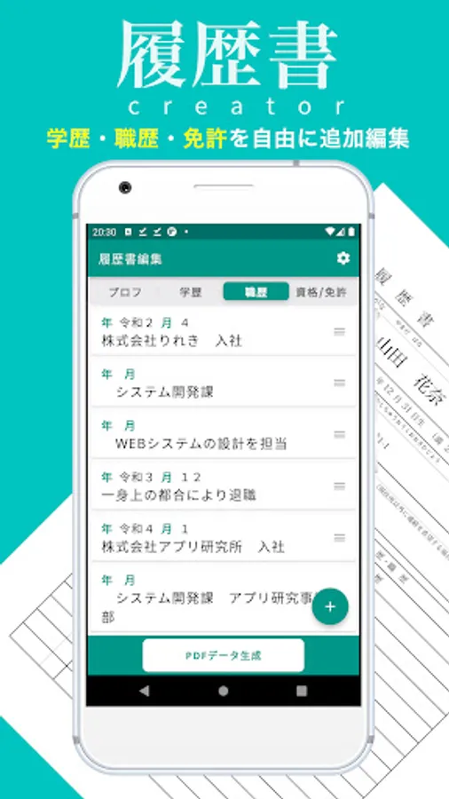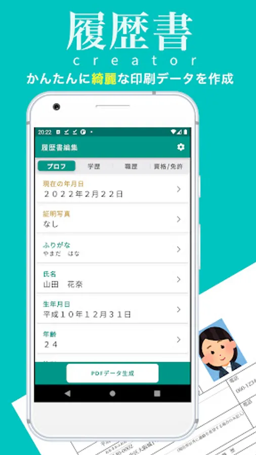It is a useful tool for job hunting that allows you to create data for printing resumes simply by entering data in the app.