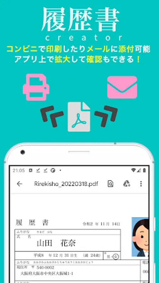 You can create beautiful resume data that can be printed on a convenience store printer or attached to an email!