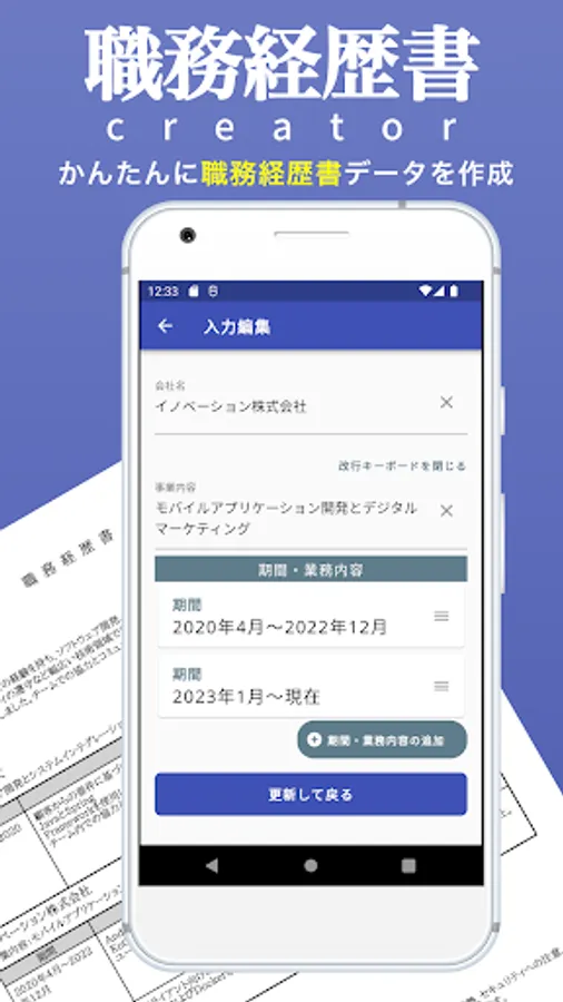 It is a convenient tool for job hunting that allows you to create data for printing a job resume simply by entering it in the app.