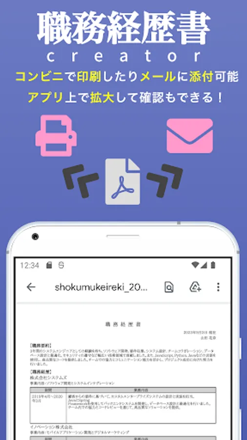 You can create beautiful job resume data that can be printed on a convenience store printer or attached to an email!