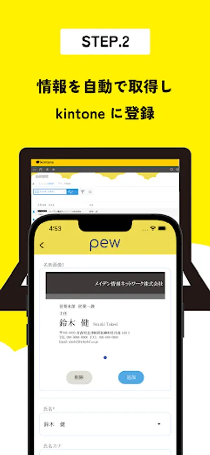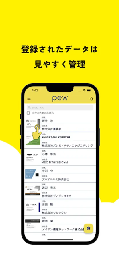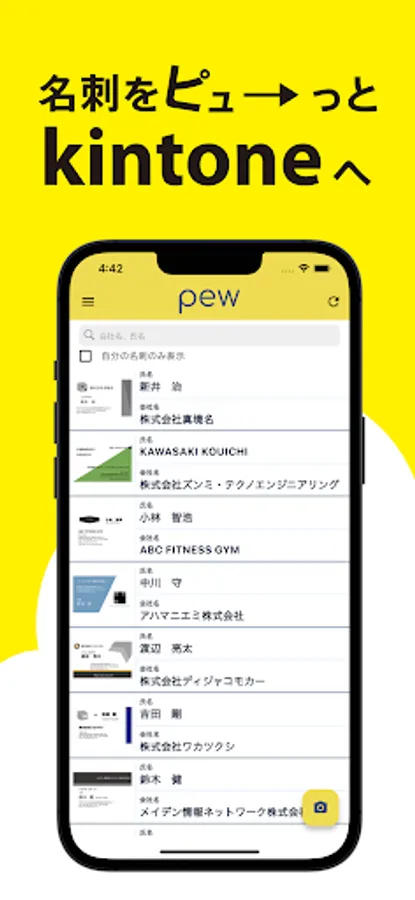 "pew" is a convenient business card management app that works directly with kintone.