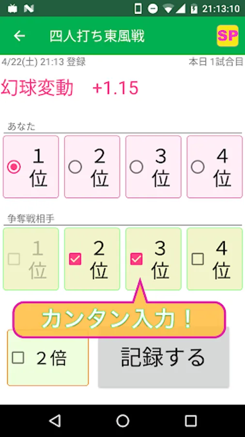 ・自分の順位とサシウマ相手の順位を記録するだけのカンタン入力!
