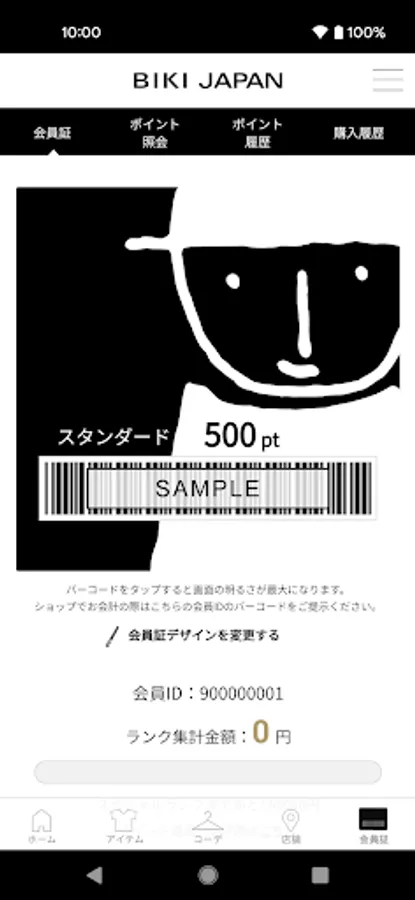 ・Membership card bar code (Please present at the cash register when purchasing at the store)