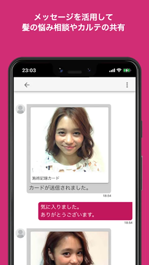 When you connect, you can receive recommended information with the message function, and you can also consult about styling and next reservation.