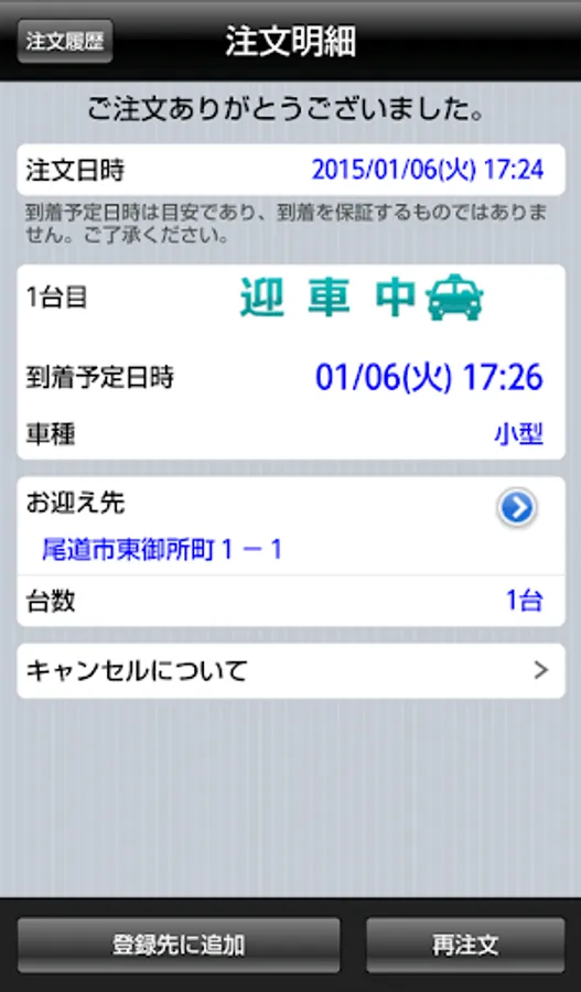 4. Cancellations can be made at the dispatch center. If you cancel, it may take some time for the status to be reflected in this application.