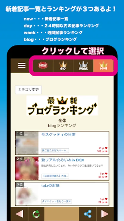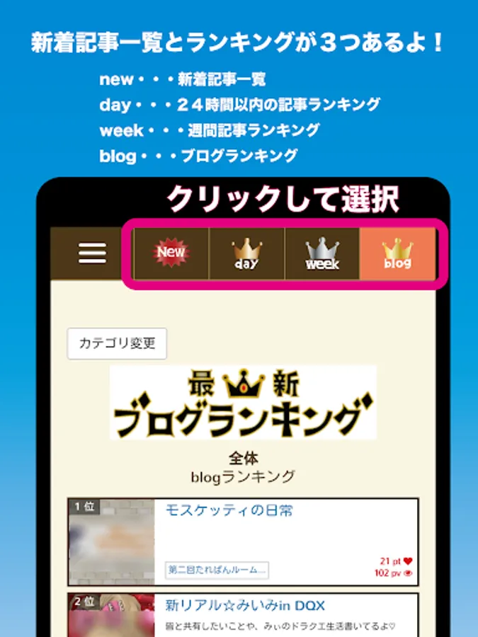 Also, in the "blog ranking", rather than "article" alone, you can check the rank of the blog itself.