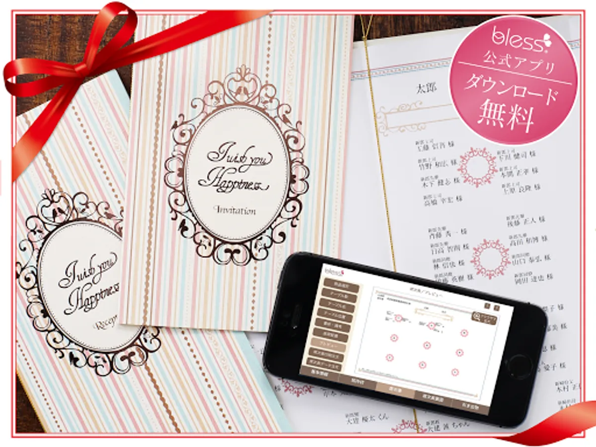 結婚式招待状・席次表などのブライダルペーパーアイテムを販売するblessがお届けする、招待状・席次表データ作成・注文のアプリです。