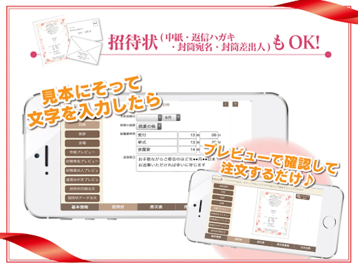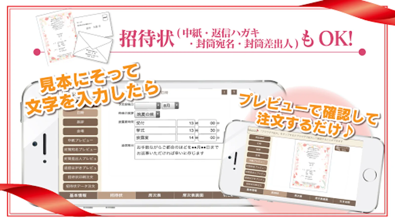 招待状から席次表や席札までのペーパーアイテムのデータ制作できるアプリとなりました!