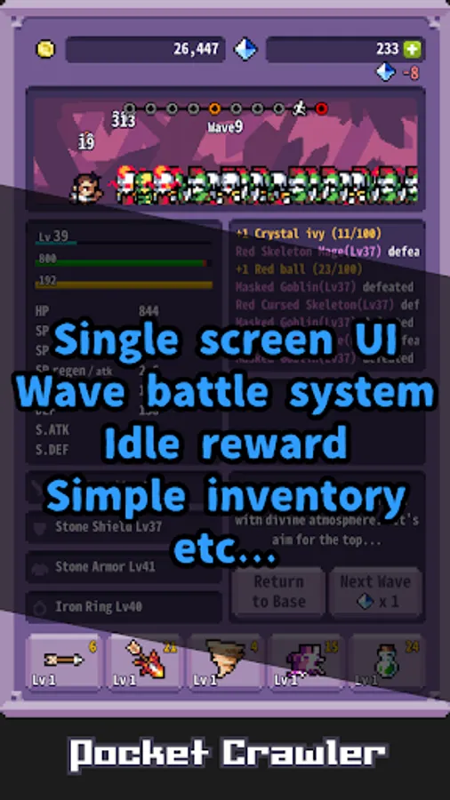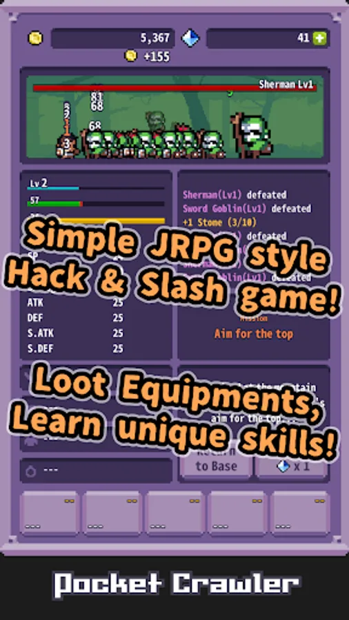 - Simple inventory for equipments and skills.