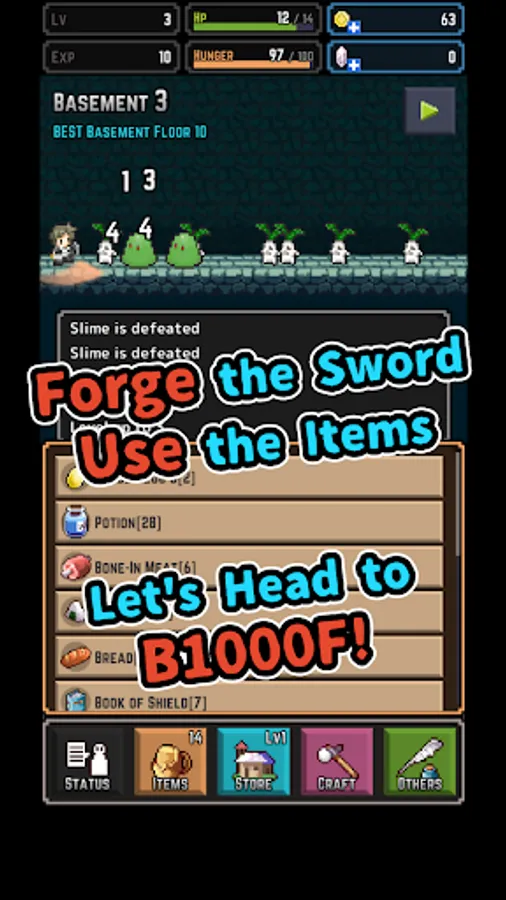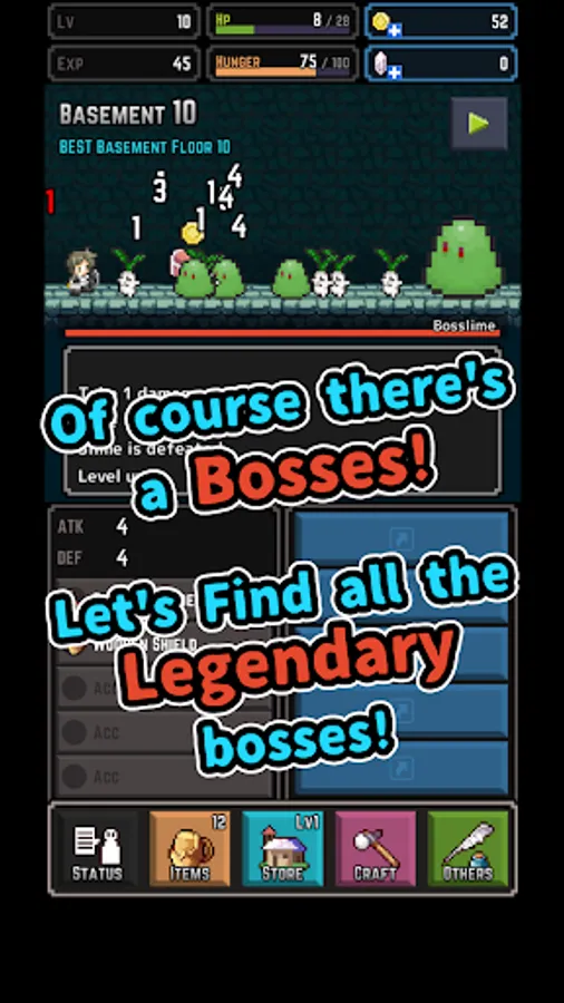 There are three types of equipment: weapons, shields, and accessories, and you can make them stronger by crafting them.