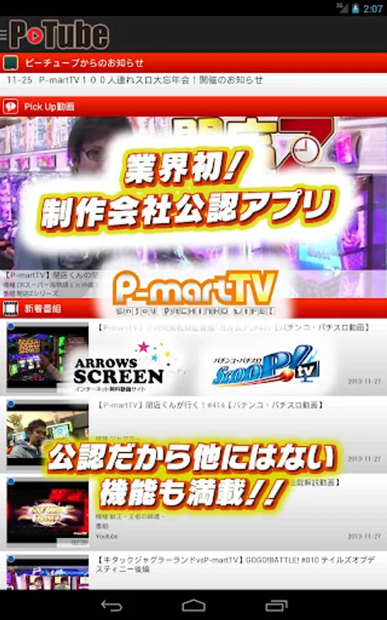 業界初!ピーマートTVやアロウズスクリーンなど、大人気の番組制作会社公認アプリ