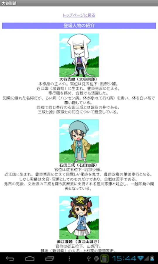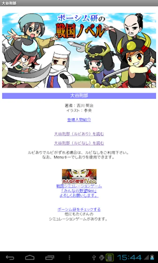 I have to Novell app masterpiece of famous historical fiction writer Yoshikawa Eiji the "Otani Osakabe" and "Romance of the Three Kingdoms".