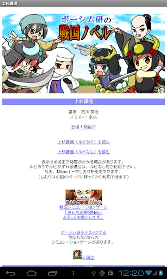 The masterpiece "Uesugi Kenshin" by Eiji Yoshikawa, a historical novel writer famous for "Sangokushi", has been made into a novel app.