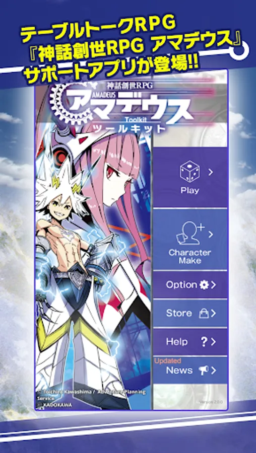 KADOKAWAより発売中のテーブルトークRPG『神話創世RPG アマデウス』のサポートアプリです。