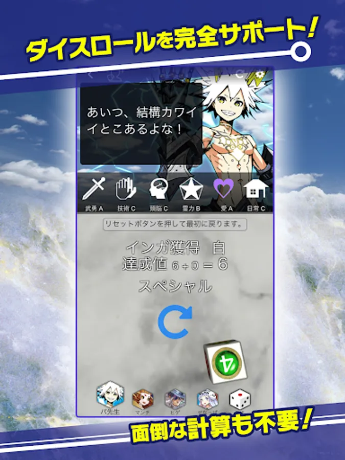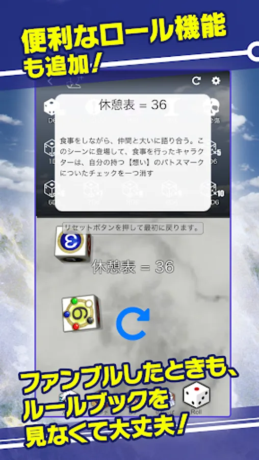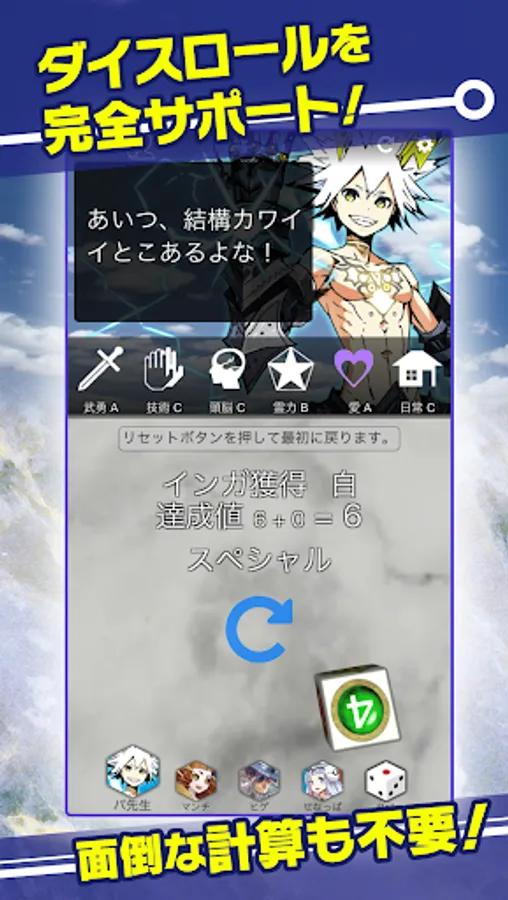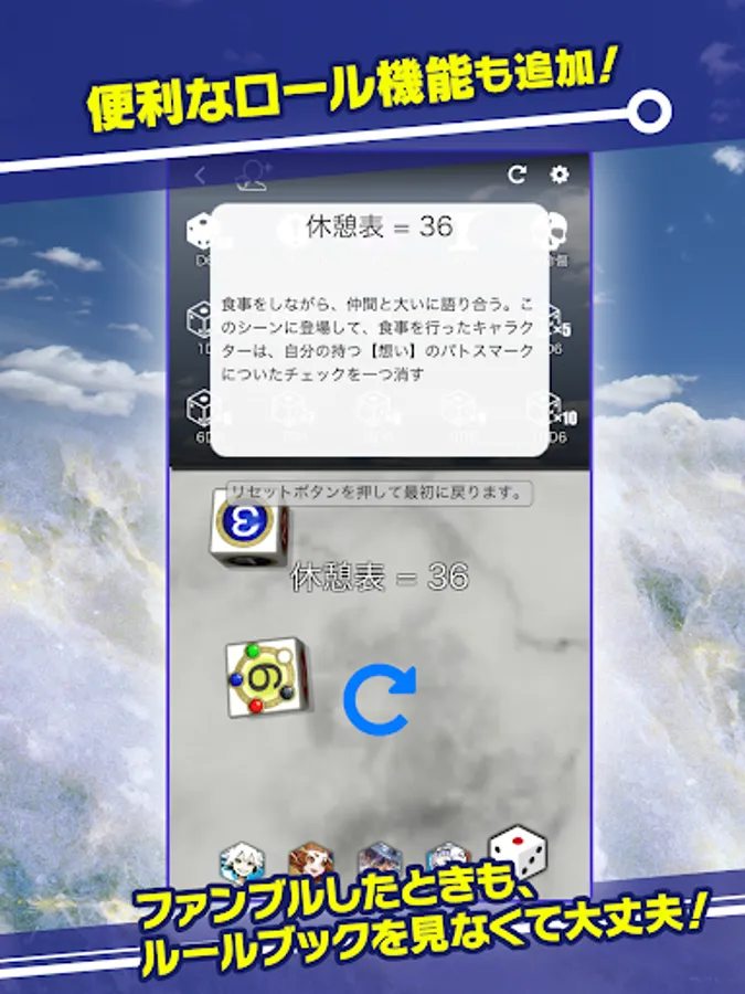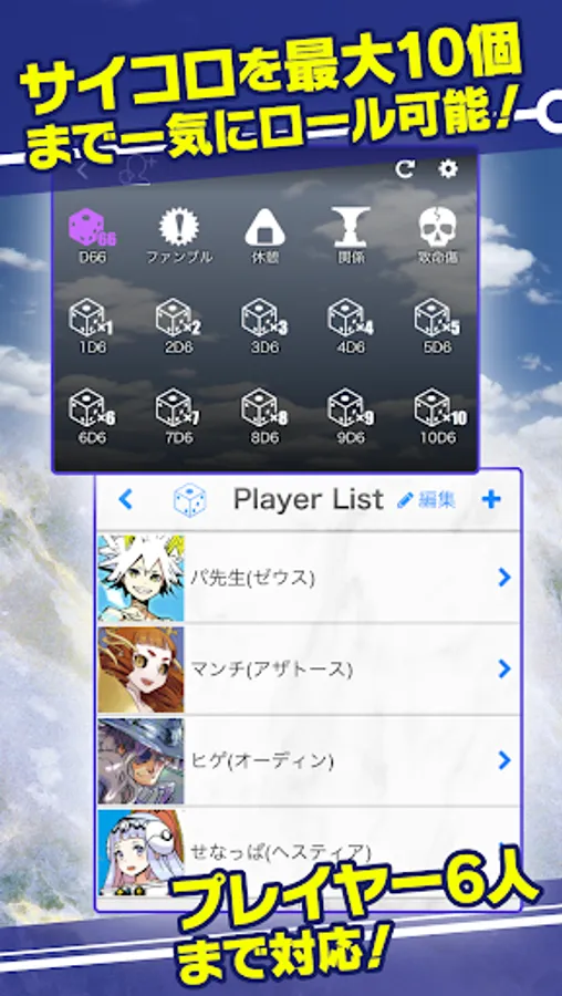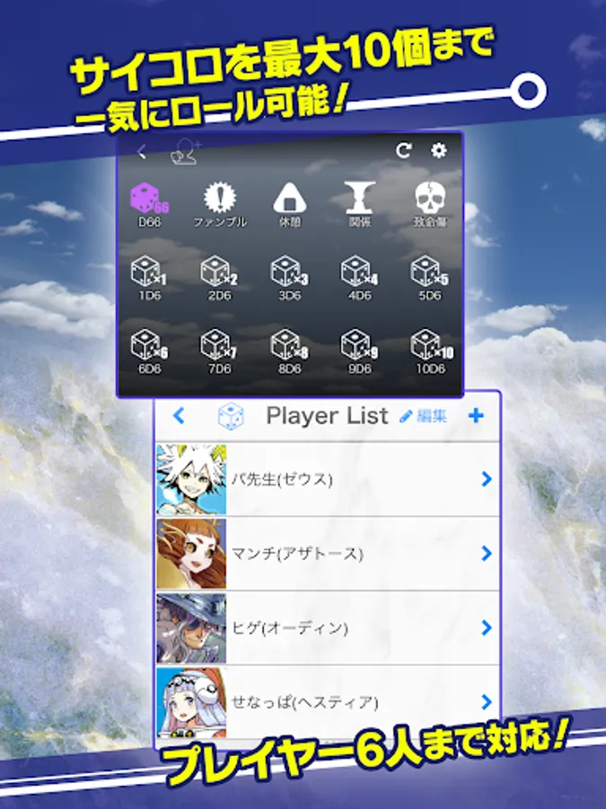 CHARACTER MAKEで登録したキャラクターデータを使用して、サイコロを振ることができます。