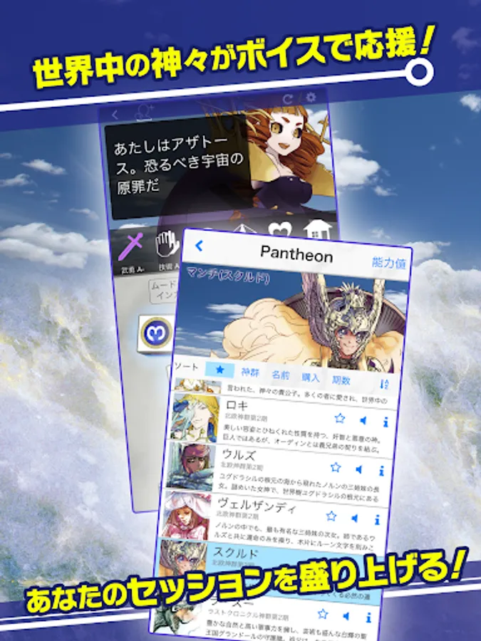 ゲームを遊びながら、『アマデウス』に登場する個性豊かな神々のボイスを楽しんでください!