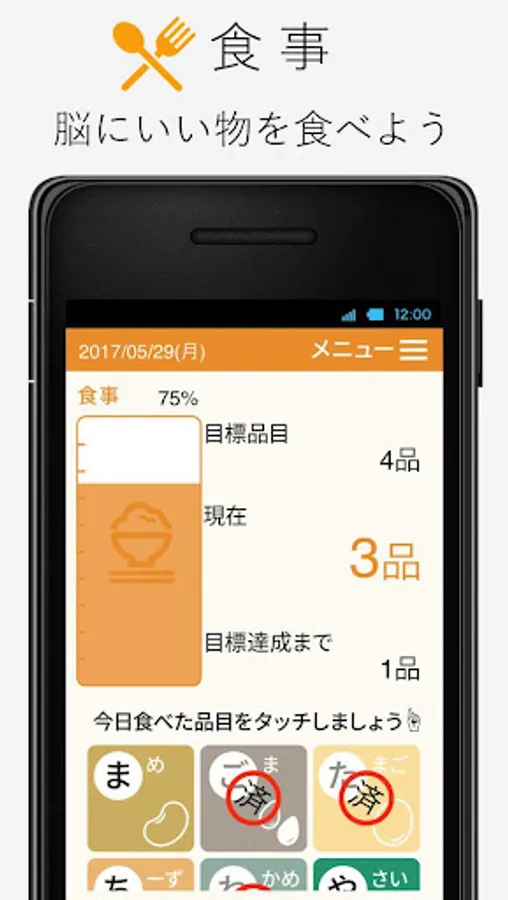 ・The meal function is as simple as possible by tapping whether you have taken 9 items that have evidence that is good for your brain and body.