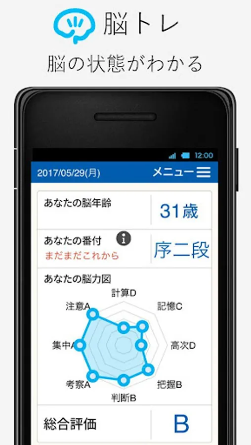 A good app for the brain is based on brain science, and is expected to activate and plasticize the brain. It is an app that supports keeping the brain in an optimal state by prompting. By doing brain training, you can also know your brain, such as brain age and brain power diagram.