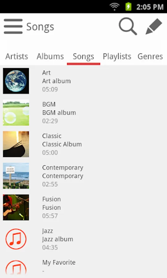 - Thumbnail VIew: Browse photos, videos, and music with thumbnails.
