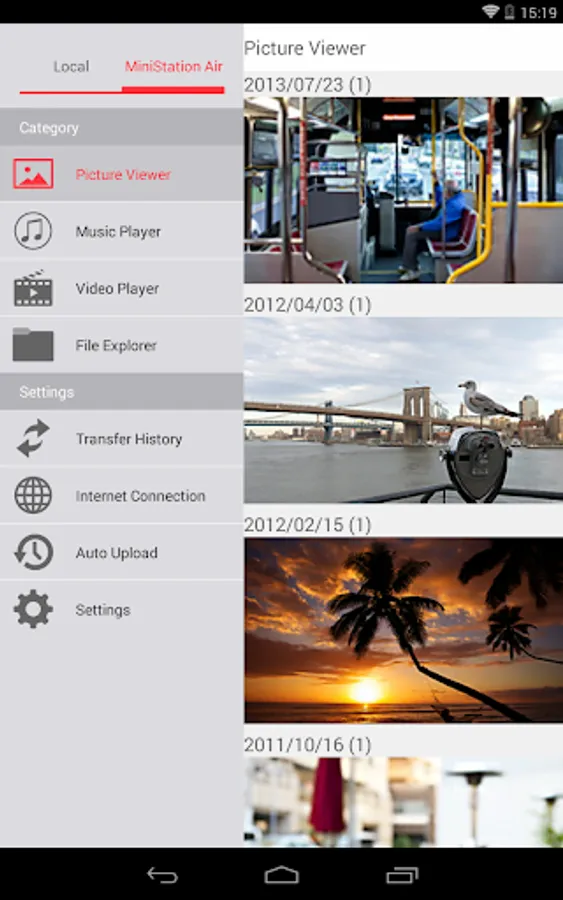 - Auto Upload: New photos saved in your Android device are uploaded to the MiniStation Air automatically.