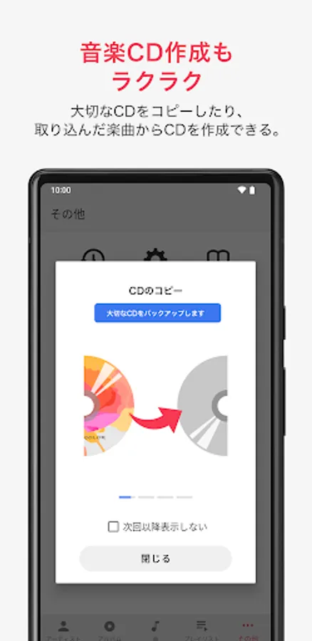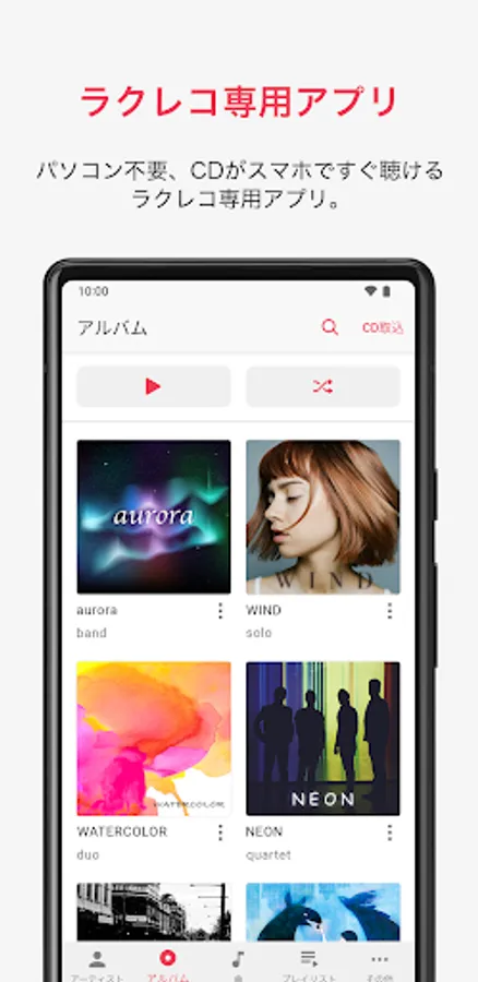 If you use the Racreco dedicated app, you can import, play, and manage music from CDs with "Racreco".