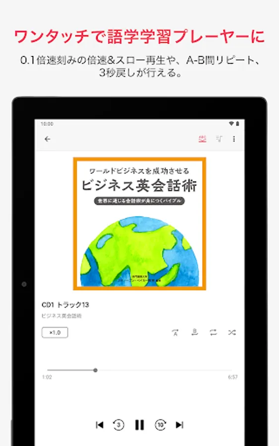 ・Language learning player mode: Equipped with three functions that allow you to learn CDs for language learning such as listening materials with "Rakureko". You can use "speed control", "repeat between A-B", "rewind 3 seconds & skip 10 seconds".