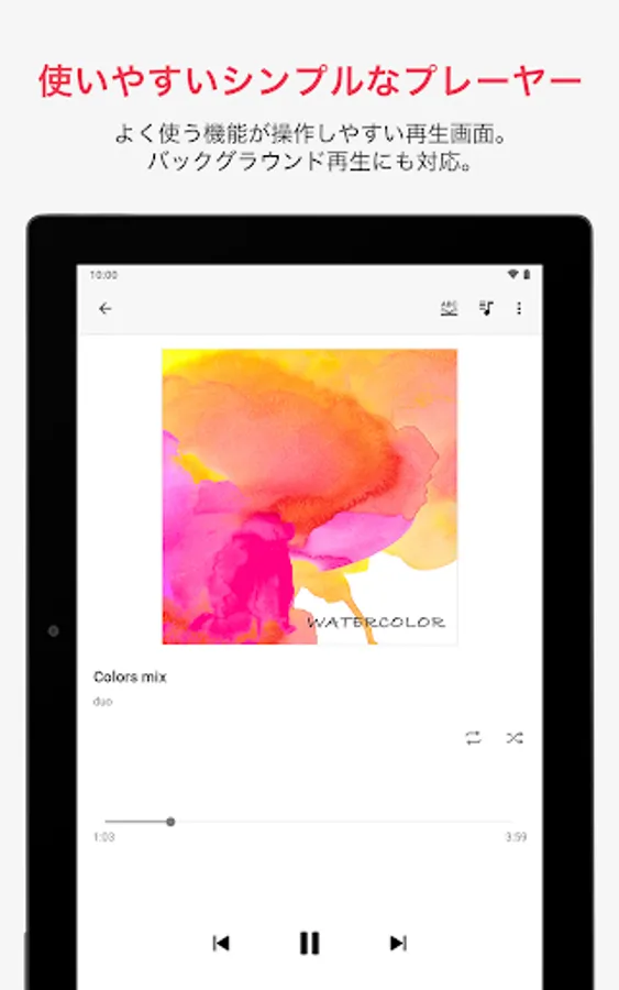 - Playback of music: You can play the imported music as it is with this application. You can also send songs, shuffle play and repeat play.