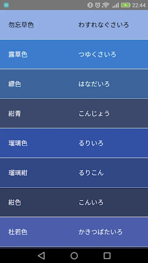 "Tsuyukusa-iro", "Edomurasaki", "koubai-iro", there are many traditional colors in Japan. This app gives you the access to the selection of Japanese traditional colors with reference to JIS Z 8102:2001.