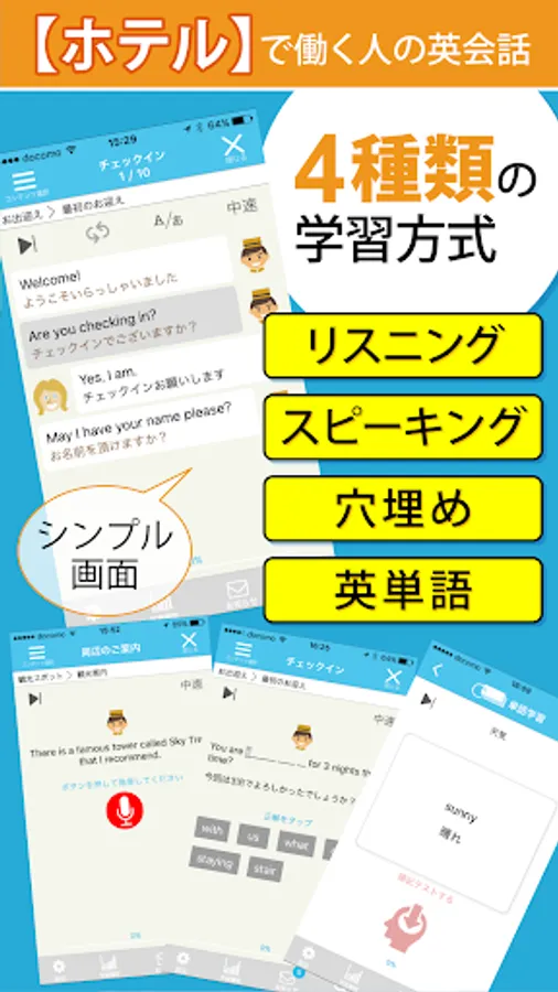 ◆リスニング、スピーキング、穴埋め問題、業務で使える厳選単語学習(1,400単語)