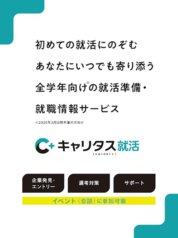 This is the official app for the internship and job hunting preparation site "Careitas Job Hunting" for new graduates and graduates after 2025.