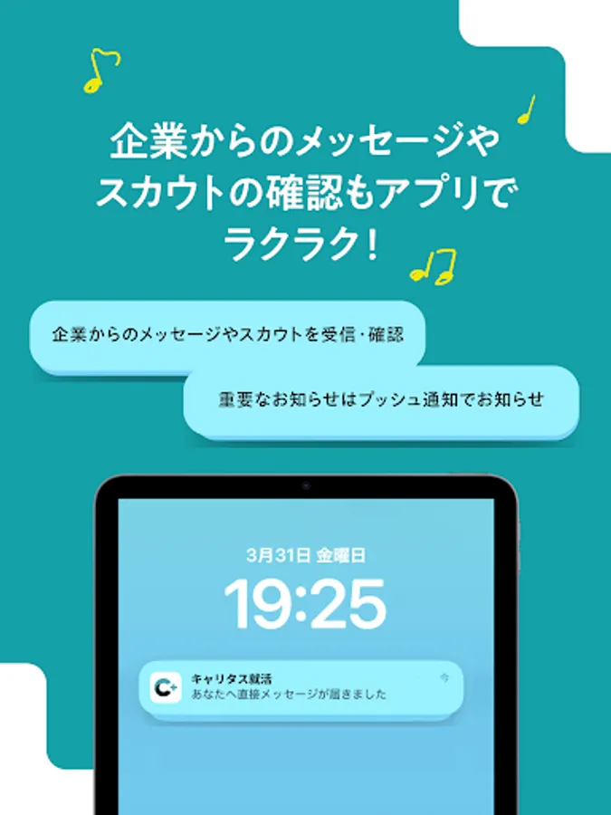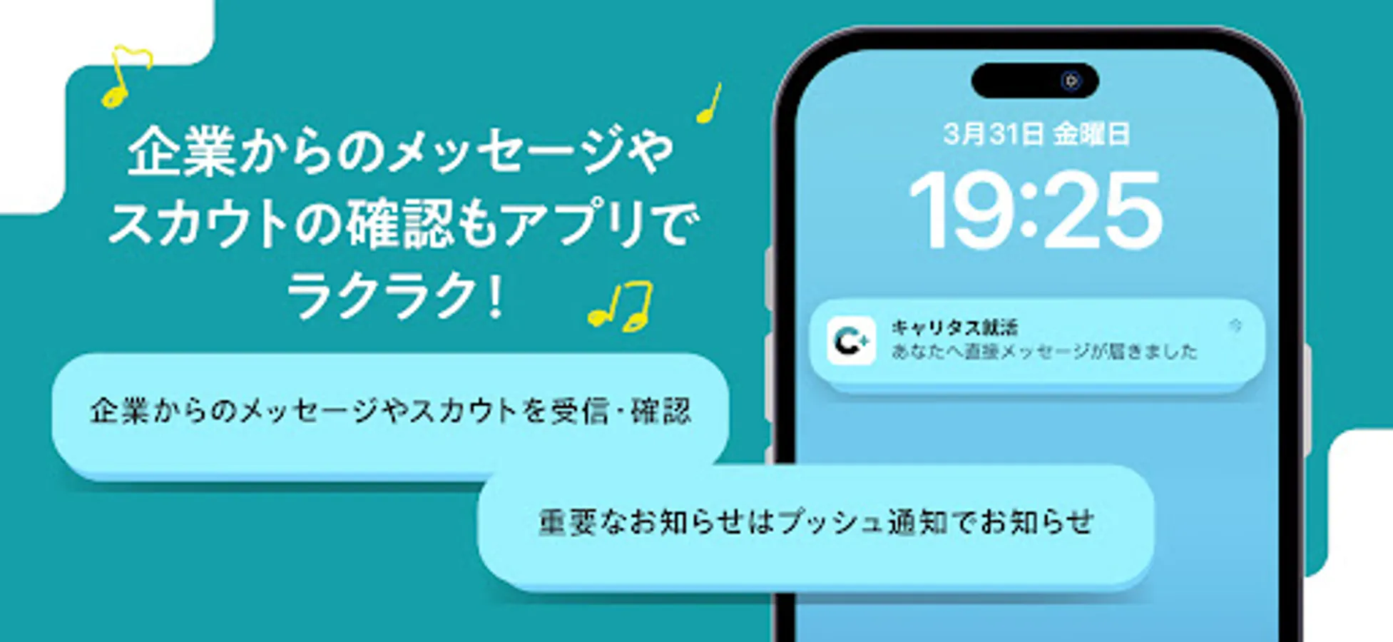 You can receive and check messages and scouts from companies. You will be notified in the app when you receive it, so you won't miss an important message. Important notifications will be notified by push notification.