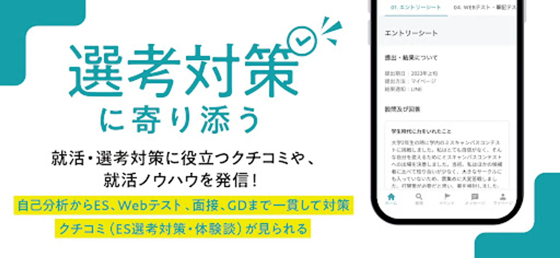 Since it is linked with the web, it is possible to synchronize and efficiently manage applications for internships and job research at companies, follow-ups (bookmarks), booth visits at events (joint company briefings, joint discussions), etc. ! It will be possible to receive scouts from June 2023 and to enter recruitment information from March 2024, making it a must-have item for job hunting that can be used all year round.