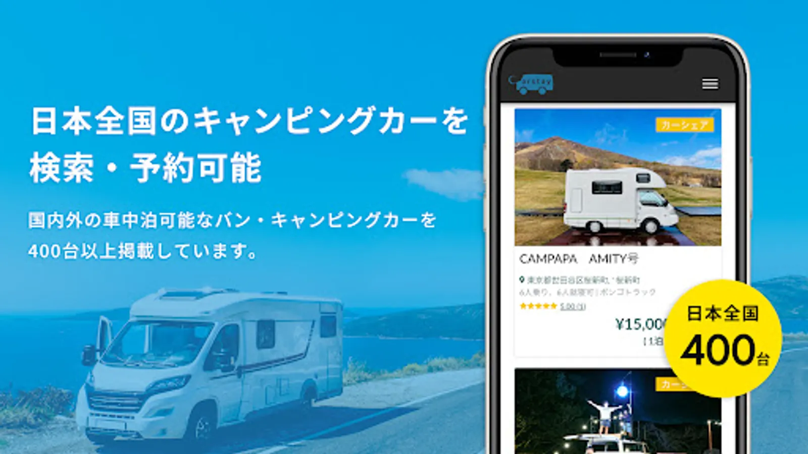 This is the official app of "Carstay" that allows you to easily book camper car sharing, rentals, RV parks, and sightseeing experiences throughout Japan.