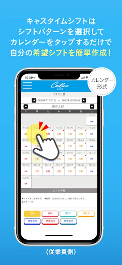 From the employee side, you can select a shift on the calendar screen and apply for the shift you want from the administrator.