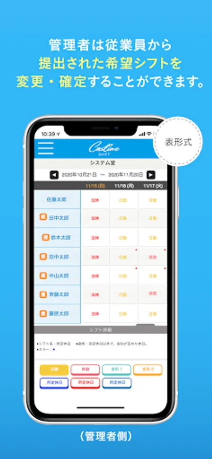 This app is a shift management app for managing employee shifts from the Attendance Management Cass Time series.