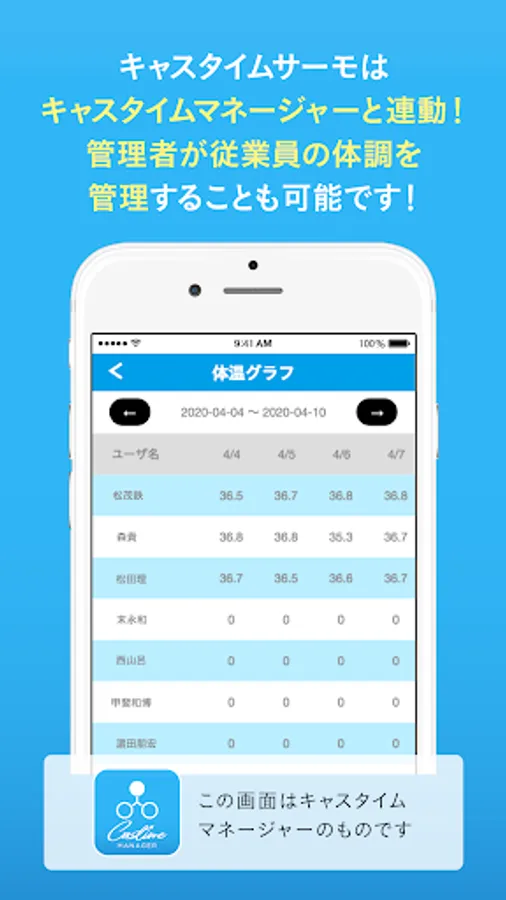 Cathtime Thermo is a body temperature recording app for attendance management Cathtime series.
