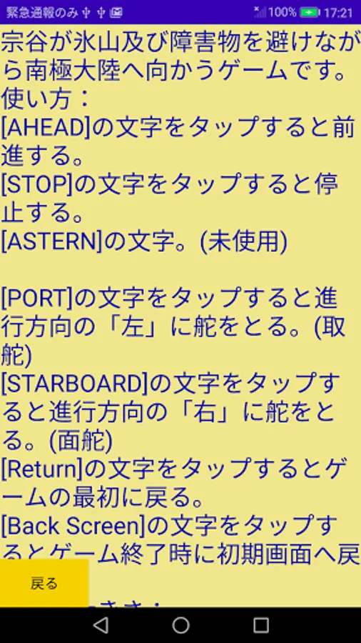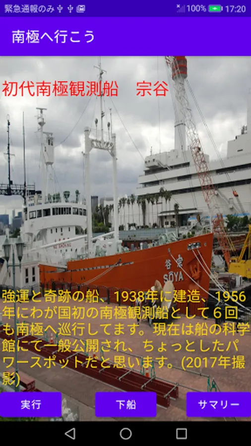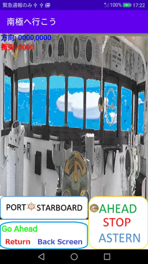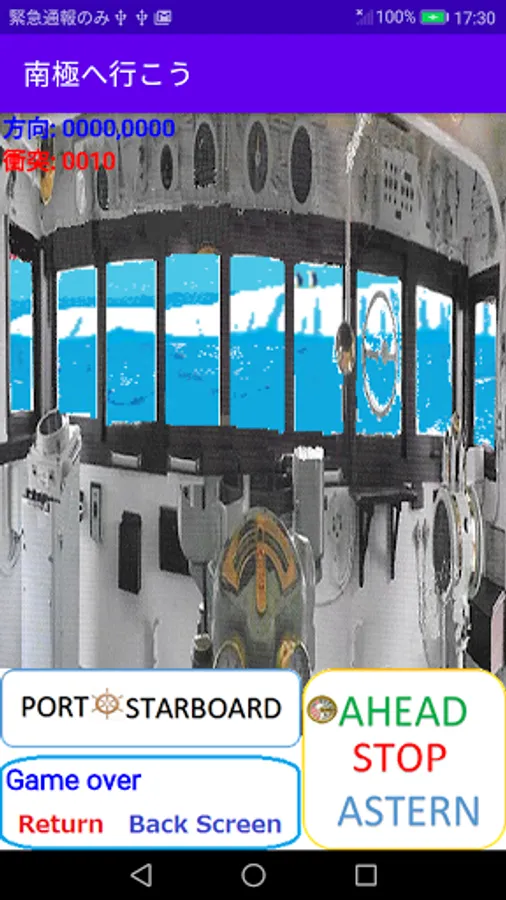 宗谷が氷山及び障害物を避けながら南極大陸へ向かうゲームです。