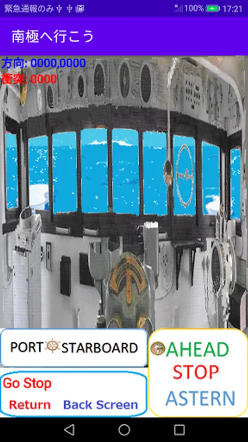 [STARBOARD]の文字をタップすると進行方向の「右」に舵をとる。(面舵)