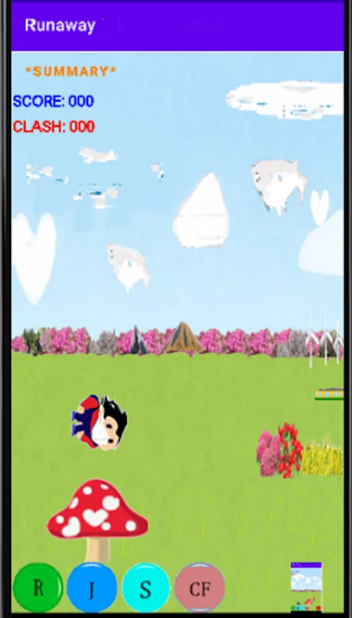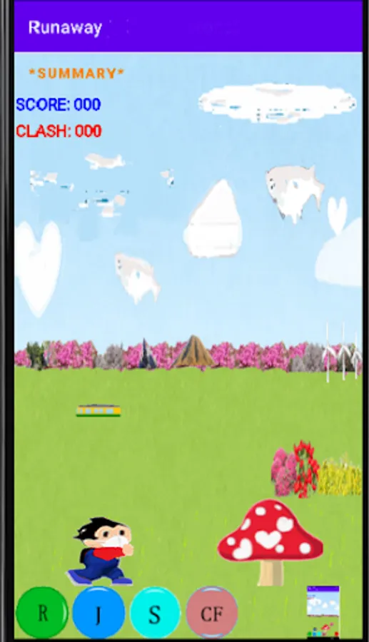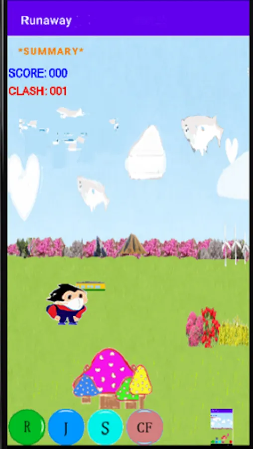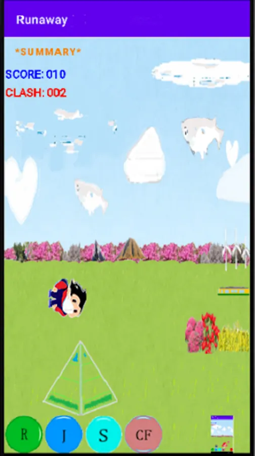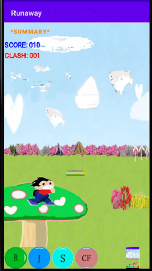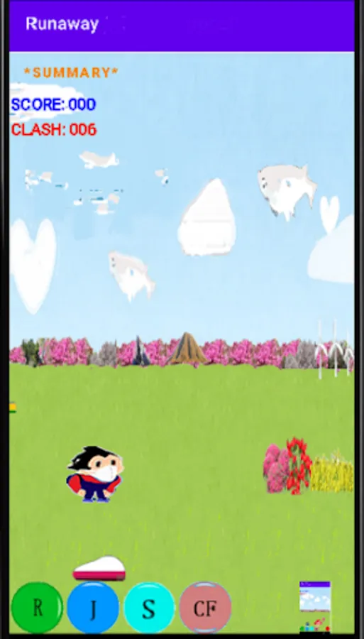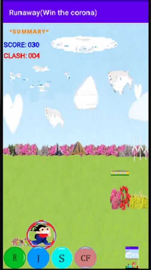 S: The character will rotate and rise, and if you hit a moving cloud, your score will increase.